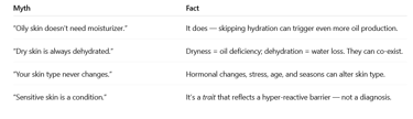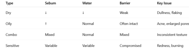 Fun fact: Skin type isn’t fixed. Hormones, climate, diet, and even air pollution can shift your skin type over time — that’s why “what worked before” may suddenly stop working.
